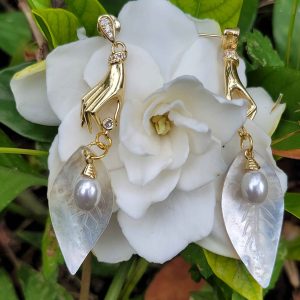 Black & Gold Drop Earrings with Mother-of-Pearl Inlay